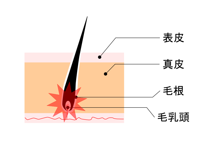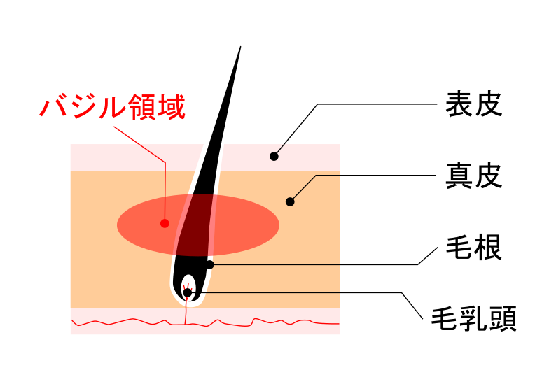 | 効果 | これから生えてくる毛を抑制する (バジル領域に作用) |