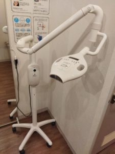 ホワイトニング用LEDライトを歯に照射してください。1回の照射時間は8分間となります。